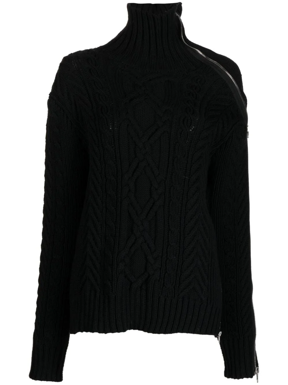 cable-knit zip-detailed jumper Highlights - Black - Cotton - Cable knit - Zip details - Roll neck - Long sleeves - Straight hem - Ribbed trim Imported Composition Cotton 100% Washing instructions Dry Clean Only