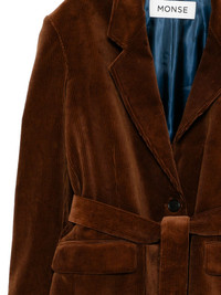 deconstructed-lapel blazer Highlights - Coffee brown - Front button fastening - Self-tie fastening - Chest welt pocket - Central rear vent Made in United States Composition Lining: Cupro 52%, Polyester 48% Outer: Cotton 100% Washing instructions Dry Clean Only