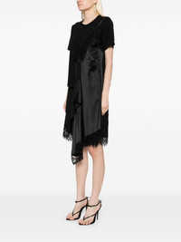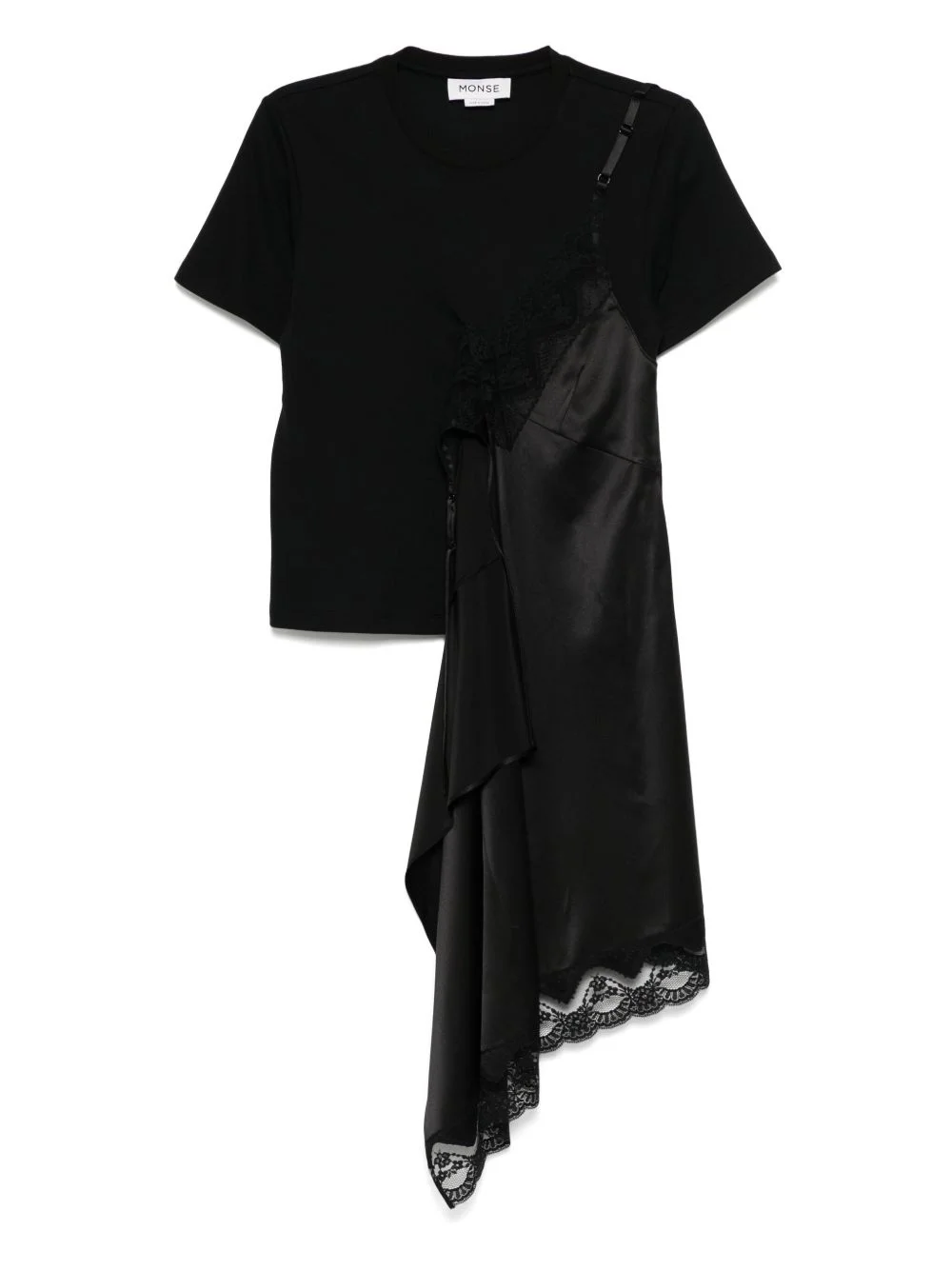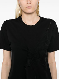 deconstructed t-shirt Highlights - Black - Asymmetric design - Short sleeves - Lace detailing Imported Composition Silk 100% Outer: Cotton 85%, Polyester 15% SIZE & FIT Model measurements Height 5 ft 9 in(1.76 m) Bust/Chest 31.1 in(79 cm) Hips 35.03 in(89 cm) Waist 24.4 in(62 cm) FittingInformation Designed for a slim fit that sits just away from the body offering a close yet comfortable fit Made from a midweight non-stretch fabric, this piece offers minimal elasticity when worn