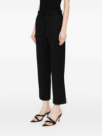 deconstructed tuxedo trousers Highlights - Black - Concealed front button, hook and zip fastening - Concealed hook and zip fastening on hem - Side slash pocket - Belt loops Made in United States Composition Virgin Wool 95%, Elastane 5% SIZE & FIT Model measurements Height 5 ft 9 in(1.76 m) Bust/Chest 31.1 in(79 cm) Hips 35.03 in(89 cm) Waist 24.4 in(62 cm) FittingInformation Designed for a straight-leg fit, these trousers allow for a close fit at the waist and an unrestricted, comfortable fit over the leg Cropped in length Made from a midweight stretch fabric, this piece offers elasticity and flexibility when worn Washing instructions Dry Clean Only