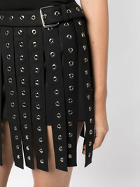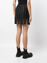 eyelet-detailing asymmetric skirt Highlights - Black - Metal eyelet detailing - Asymmetric design - High-waisted - Belted waist - Belt loops - Thigh-length Made in United States Composition Acetate 100% SIZE & FIT Model measurements Height 5 ft 10 in(1.77 m) Bust/Chest 31.49 in(80 cm) Hips 35.43 in(90 cm) Waist 25.19 in(64 cm) FittingInformation The belt offers adjustability for fitted preferences Washing instructions Dry Clean Only
