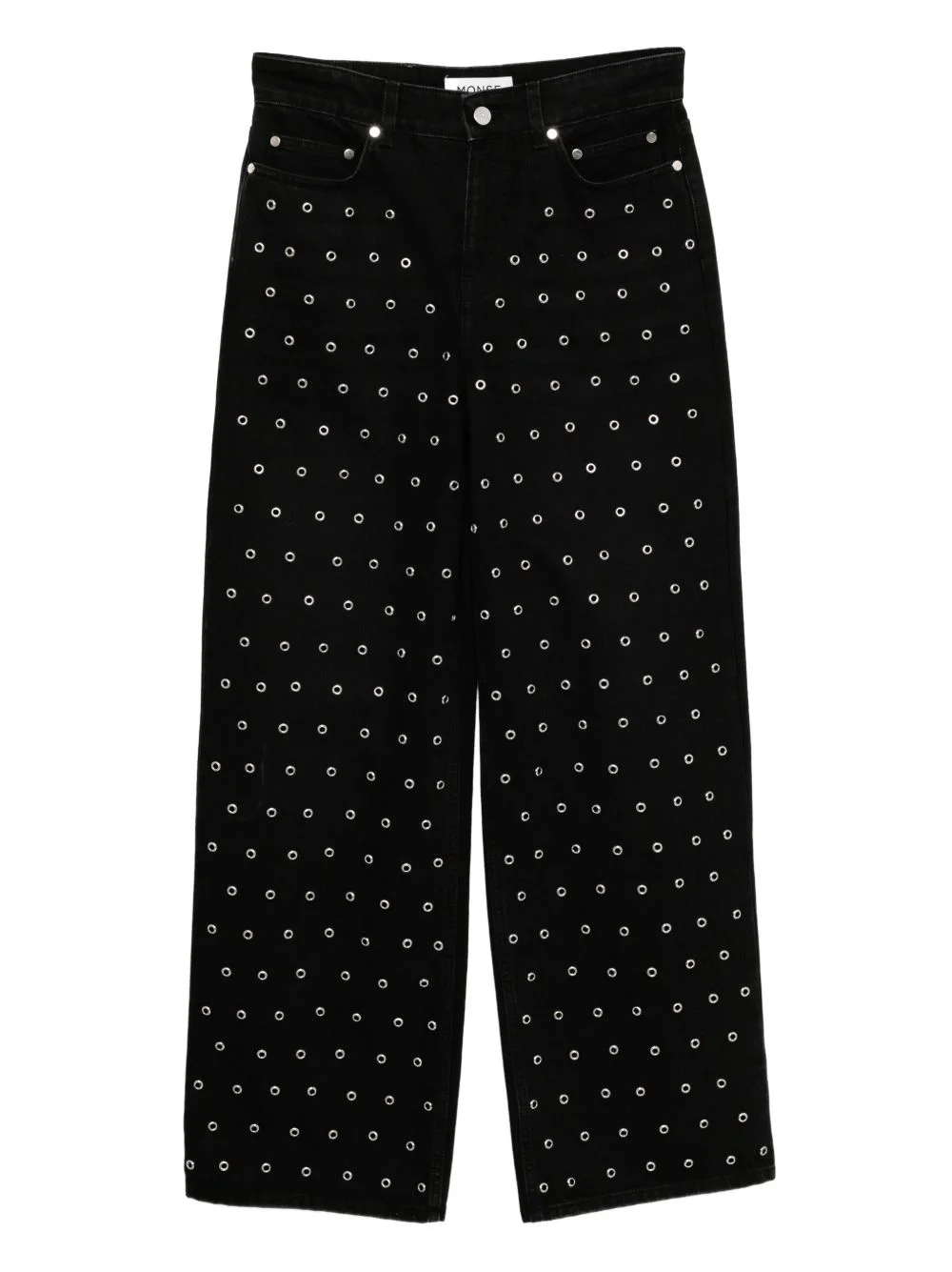 eyelet-embellished Jeans Highlights - Black - Concealed front zip fastening - Classic five pockets Imported Composition Cotton 100% SIZE & FIT Model measurements Height 5 ft 10 in(1.78 m) Bust/Chest 29.52 in(75 cm) Hips 34.25 in(87 cm) Waist 24.4 in(62 cm) FittingInformation Designed for a straight-leg fit, these jeans allow for a close fit at the waist and an unrestricted and comfortable fit over the leg Sturdy and hard-wearing, this denim piece offers no stretch Washing instructions Dry Clean Only