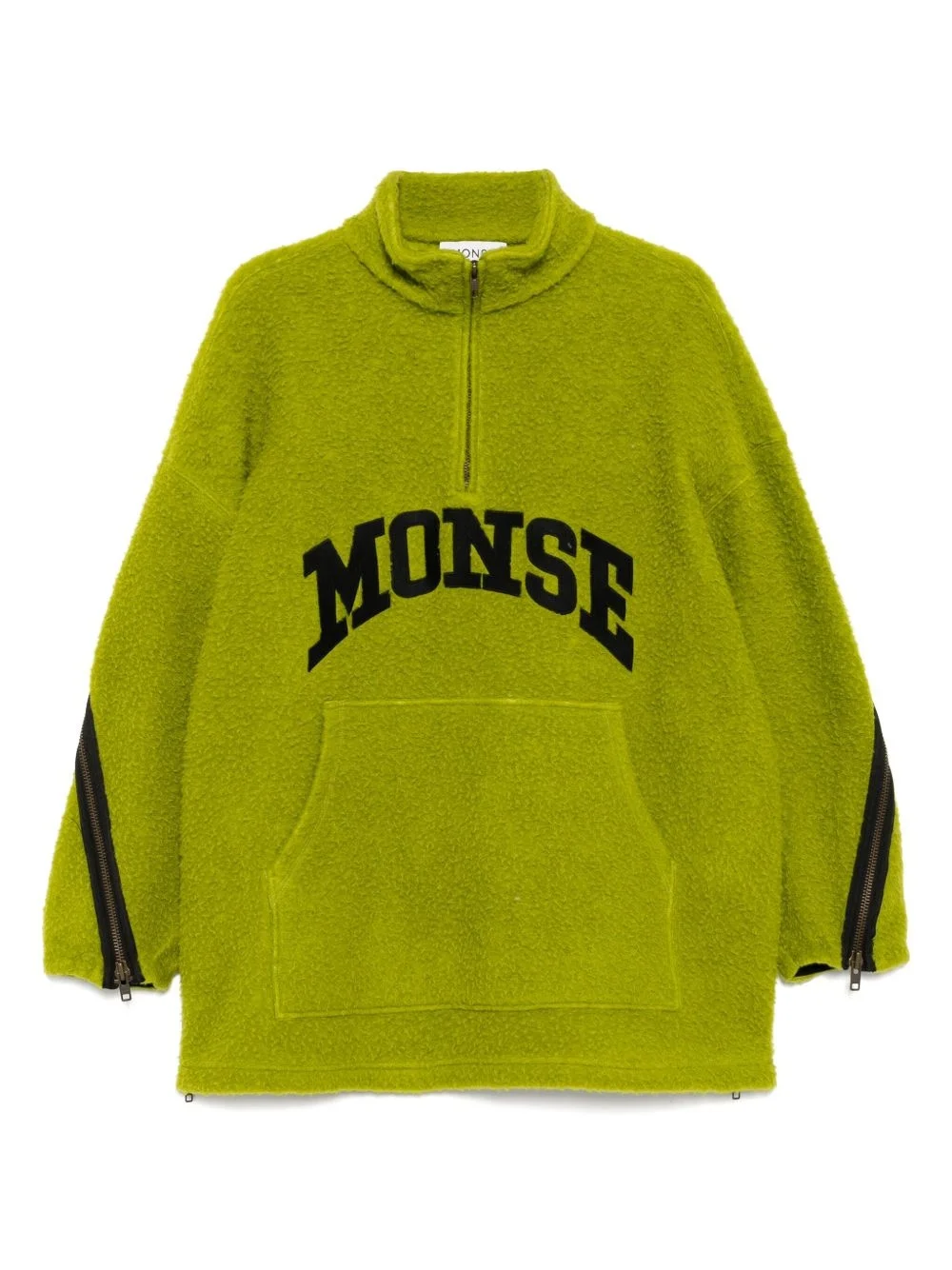 fleece half-zip sweatshirt Highlights - Moss green - Half front zip fastening - Long sleeves - Logo patch to the front Imported Composition Polyester 52%, Wool 48%