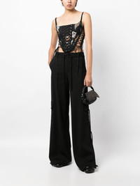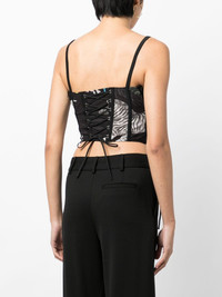 graphic-print lace-up corset Highlights - Black - All-over graphic print - Lace-up detailing - Metal eyelet detailing - Corset style - Square neck - Side zip fastening - Spaghetti straps - Cropped Imported Composition Polyester 100% SIZE & FIT Model measurements Height 5 ft 10 in(1.77 m) Bust/Chest 31.49 in(80 cm) Hips 35.43 in(90 cm) Waist 25.19 in(64 cm) FittingInformation Designed for a very close and sculpting fit The adjustable drawstring means that you can adjust this piece’s fit to suit your comfort and preference Washing instructions Dry Clean Only