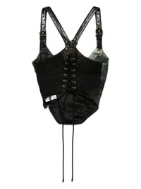 Harness Tapestry Bustier vest Highlights - Navy blue - Concealed side zip fastening - Rear drawstring slit - Adjustable shoulder straps Made in United States Composition Outer: Polyester 51%, Cotton 19%, Wool 18%, Polycotton 6%, Polyamide 4%, Acrylic (Fiber) 2% Lining: Polyester 100% Washing instructions Dry Clean Only