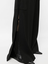 high-waist side-slit cargo trousers Highlights - Black - Cotton - High waist - Belt loops - Front tie fastening - Side slits - Wide leg - Two side slit pockets - Two side cargo pockets - Rear welt pocket Made in United States Composition Cotton 100% SIZE & FIT Model measurements Height 5 ft 10 in(1.77 m) Bust/Chest 31.49 in(80 cm) Hips 35.43 in(90 cm) Waist 25.19 in(64 cm) FittingInformation Designed with a wide-leg cut, these trousers allow for a close fit at the waist and offer a loose and roomy fit over the leg Adjust this piece’s waistband to your preference using the drawstring