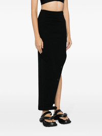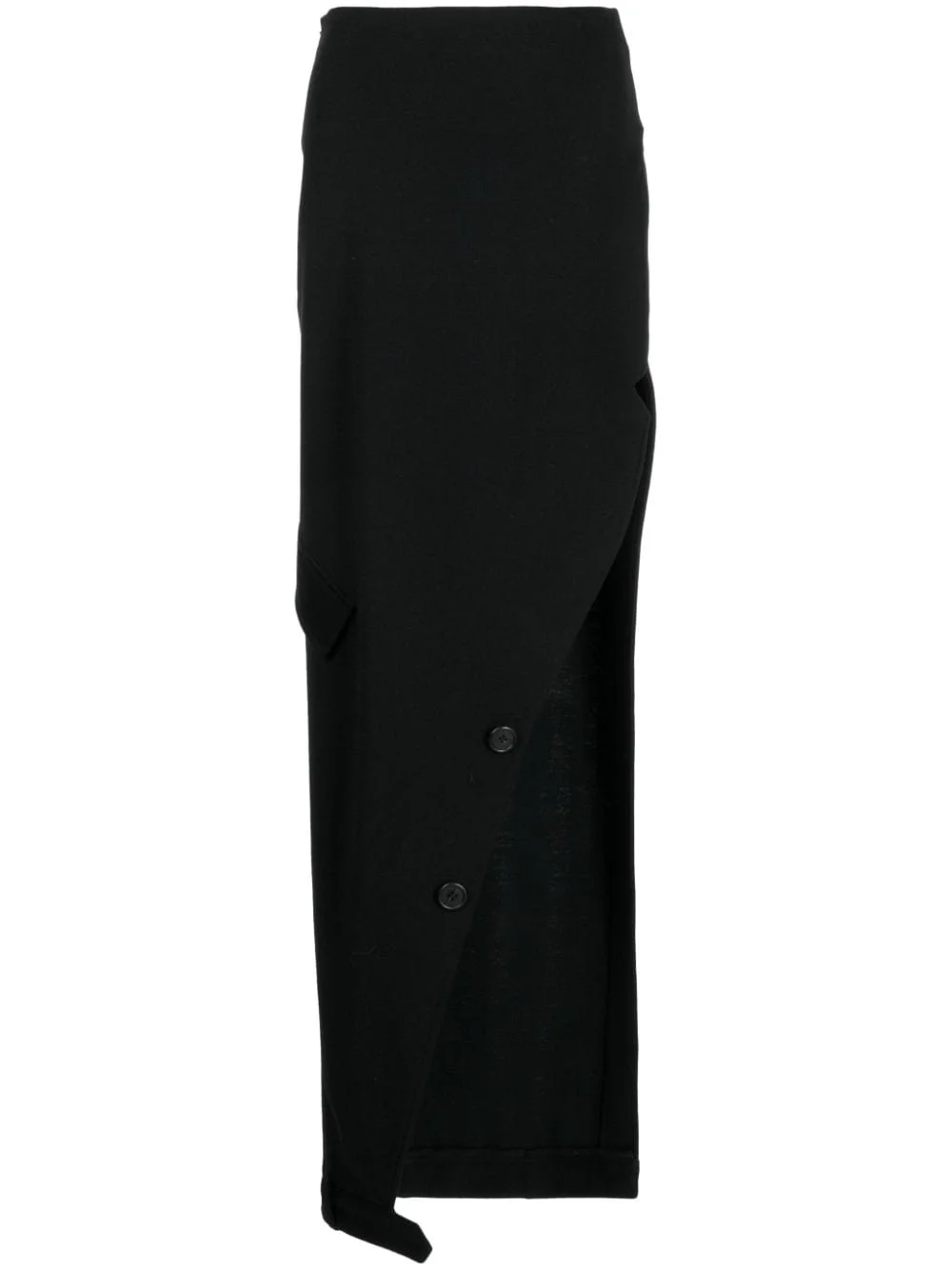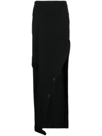 high-waisted cotton skirt Highlights - Black - Cotton - High waist - Side slit - Side zip fastening - Mid-length - Asymmetric hem Made in United States Composition Wool 50%, Polyester 50% SIZE & FIT Model measurements Height 5 ft 10 in(1.77 m) Bust/Chest 31.49 in(80 cm) Hips 35.43 in(90 cm) Waist 25.19 in(64 cm) FittingInformation This maxi-length skirt is intended to be worn high on the waist Made from a midweight fabric This piece fits true to size – take your usual size Washing instructions Dry Clean Only