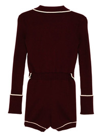 knitted playsuits Highlights - Burgundy - Short front button fastening - Ribbed waistband - Rolled cuffs - Ribbed hem Imported Composition Viscose 72%, Polyester 28% Washing instructions Dry Clean Only