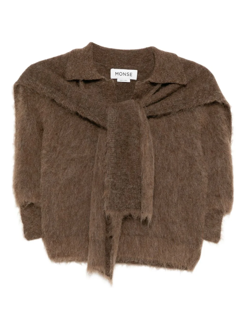 knitted scarf top Highlights - Light brown - Polo collar - Short sleeves Imported Composition Alpaca 60%, Recycled Polyamide 35%, Merino 5% Washing instructions Dry Clean Only