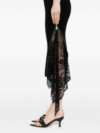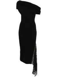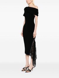 lace-insert knitted dress Highlights - Black - Side zip fastening - Off-shoulder - Asymmetric sleeves Imported Composition Merino 80%, Nylon 20% SIZE & FIT Model measurements Height 5 ft 9 in(1.76 m) Bust/Chest 31.1 in(79 cm) Hips 35.03 in(89 cm) Waist 24.4 in(62 cm) FittingInformation Designed for a slim fit that sits just away from the body offering a close yet comfortable fit Made with a midweight knit, this piece offers some stretch