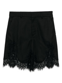 lace tailored shorts Highlights - Black - Concealed front fastening - Belt loops - Two side slash pockets - Rear jetted pocket Imported Composition Wool 40%, Polyester 29%, Viscose 28%, Lyocell 3% SIZE & FIT Model measurements Height 5 ft 9 in(1.76 m) Bust/Chest 31.1 in(79 cm) Hips 35.03 in(89 cm) Waist 24.4 in(62 cm) FittingInformation Designed for a loose fit, offering comfort and movement when worn Made from a midweight non-stretch fabric