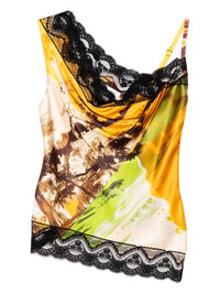 lace-trim top Highlights - Light brown - Single shoulder strap - Sleeveless Imported Composition Silk 100%