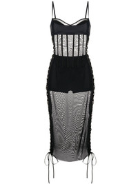 lace-up detail mesh midi dress