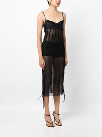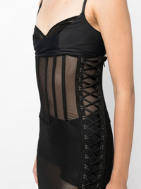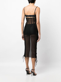 lace-up detail mesh midi dress Highlights - Black - Semi-sheer construction - Side lace-up fastening - Sweetheart neck - Rear hook and eye fastening - Adjustable spaghetti straps - Mid-length Made in United States Composition Polyester 100% SIZE & FIT Model measurements Height 5 ft 10 in(1.77 m) Bust/Chest 31.49 in(80 cm) Hips 35.43 in(90 cm) Waist 25.19 in(64 cm) FittingInformation Designed for a close fit throughout The adjustable shoulder straps allow for a preferred fit when worn Washing instructions Dry Clean Only