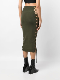 lace-up detailed knitted skirt Highlights - Olive green - Cotton - Fine knit - High waist - Cut-out detailing - Side lace-up fastening - Straight hem - Mid-calf length Imported Composition Cotton 100% SIZE & FIT Model measurements Height 5 ft 10 in(1.77 m) Bust/Chest 31.49 in(80 cm) Hips 35.43 in(90 cm) Waist 25.19 in(64 cm) FittingInformation This midi-length skirt is intended to be worn high on the waist Made with a lightweight knit, this piece offers some stretch This piece fits true to size – take your usual size Washing instructions Dry Clean Only