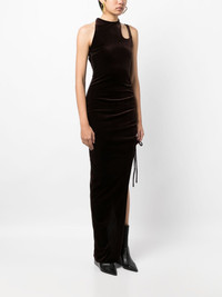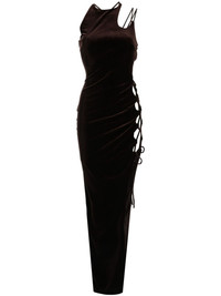 lace-up detailind velvet maxi dress