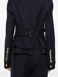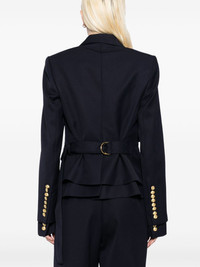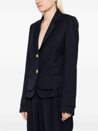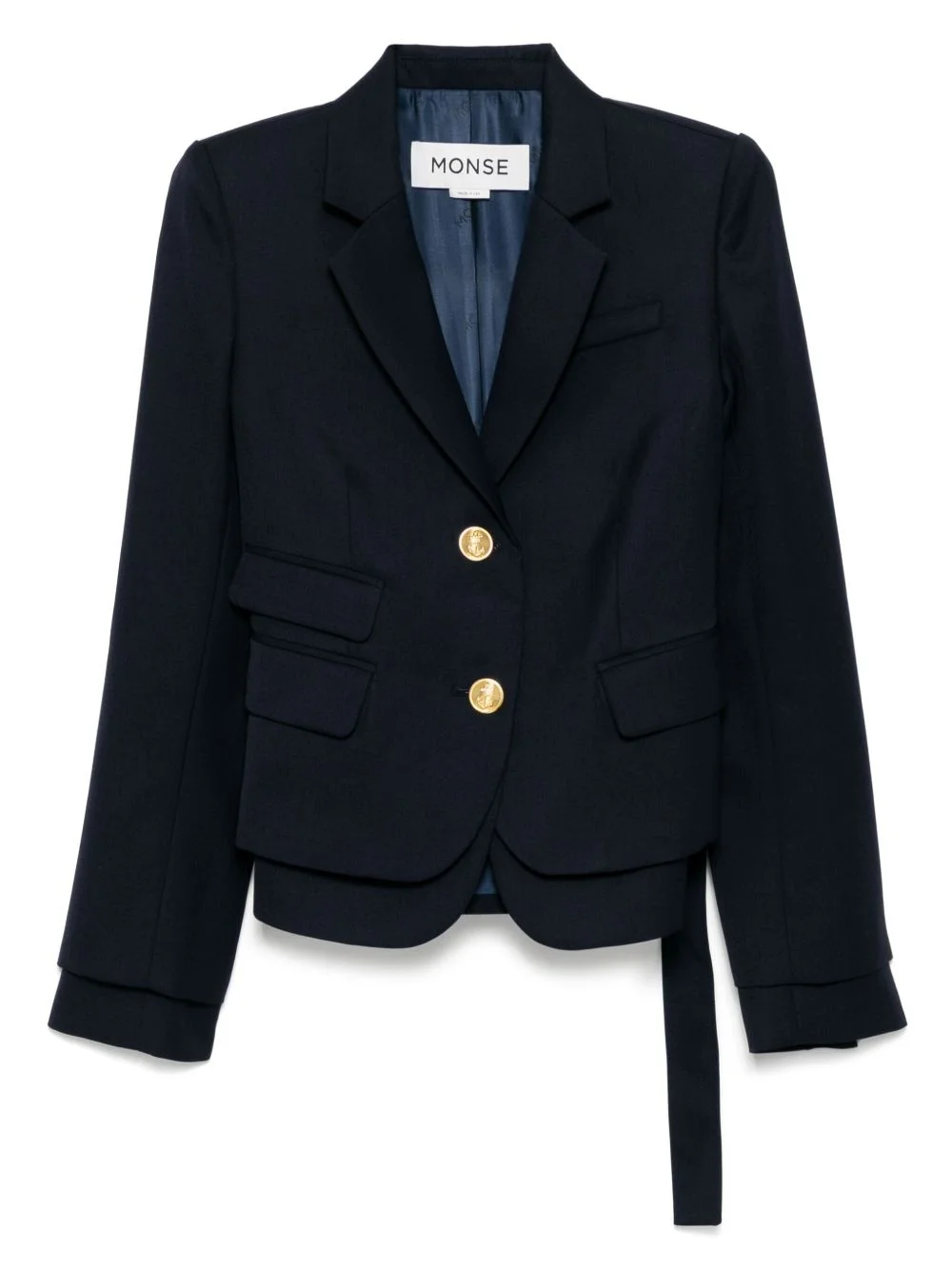 layered blazer Highlights - Midnight blue - Front button fastening - Chest welt pocket - Front flap pockets - Belted waist Made in United States Composition Polyester 55%, Wool 45% SIZE & FIT Model measurements Height 5 ft 9 in(1.76 m) Bust/Chest 31.1 in(79 cm) Hips 35.03 in(89 cm) Waist 24.4 in(62 cm) FittingInformation Designed for a slim fit that sits just away from the body offering a close yet comfortable fit The internal shoulder pads offer a structured shape Made from a midweight non-stretch fabric