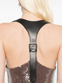 leather-harness sequinned dress Highlights - Dark brown - Crew neck - Sleeveless Imported Composition Outer: Polyester 97%, Spandex/Elastane 3% Calf Leather 100% SIZE & FIT Model measurements Height 5 ft 9 in(1.76 m) Bust/Chest 31.1 in(79 cm) Hips 35.03 in(89 cm) Waist 24.4 in(62 cm) FittingInformation Designed for a slim fit that sits just away from the body offering a close yet comfortable fit Made from a midweight stretch fabric, this piece offers elasticity and flexibility when worn