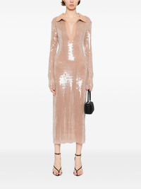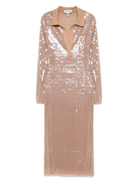 mesh midi dress Highlights - Beige - V-neck - Slip-on style - Sequin detailing Imported Composition Polyester 97%, Spandex/Elastane 3% SIZE & FIT Model measurements Height 5 ft 9 in(1.76 m) Bust/Chest 30.7 in(78 cm) Hips 33.46 in(85 cm) Waist 24.4 in(62 cm) FittingInformation Designed for a close fit throughout Made from a lightweight stretch fabric, this piece offers elasticity and flexibility when worn