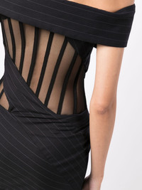 off-shoulder corsed-style dress Highlights - Black - Cotton - Pinstripe pattern - Corset style - Off-shoulder - Transparent panel detail - Thigh-length Made in United States Composition Cotton 100% SIZE & FIT Model measurements Height 5 ft 10 in(1.77 m) Bust/Chest 31.49 in(80 cm) Hips 35.43 in(90 cm) Waist 25.19 in(64 cm) FittingInformation Designed for a very close and sculpting fit Slightly short in length; consider your own measurements