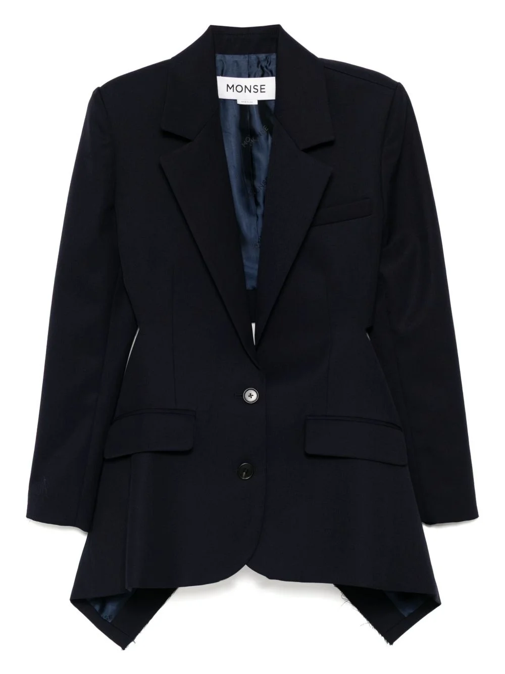 Cascade slashed-tail jacket Highlights - Navy blue - Front button fastening - Two front flap pockets - Asymmetric design - Open back Made in United States Composition Wool 95%, Elastane 5% SIZE & FIT Model measurements Height 5 ft 9 in(1.76 m) Bust/Chest 31.1 in(79 cm) Hips 35.03 in(89 cm) Waist 24.4 in(62 cm) FittingInformation Designed for a slim fit that sits just away from the body offering a close yet comfortable fit The internal shoulder pads offer a structured shape Made from a midweight non-stretch fabric