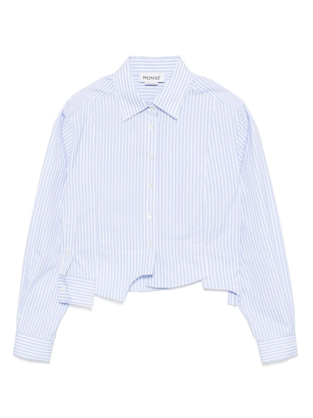 paneled cropped shirt Highlights - Light blue - Front button fastening - Buttoned-cuff sleeves - Asymmetric hem - Cropped Imported Composition Cotton 100% SIZE & FIT Model measurements Height 5 ft 9 in(1.76 m) Bust/Chest 31.1 in(79 cm) Hips 35.03 in(89 cm) Waist 24.4 in(62 cm) FittingInformation Designed to be unstructured, offering a loose fit throughout Cropped in length Made from a midweight non-stretch fabric
