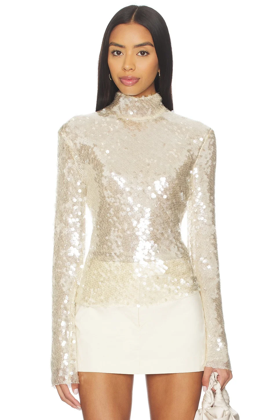- Self: 67% polyester, 23% polyamide, 10% metallic fiber Lining 1: 100% silk Lining 2: 100% polyester - Made in USA - Dry clean only - Hidden back zip with hook and eye closure - Lightweight sequin-embellished fabric - Mockneck styling - Garment is intentionally sheer, undergarments will show through - Please note undergarment not included - Revolve Style No. MONS-WS45 - Manufacturer Style No. MF250513SMH