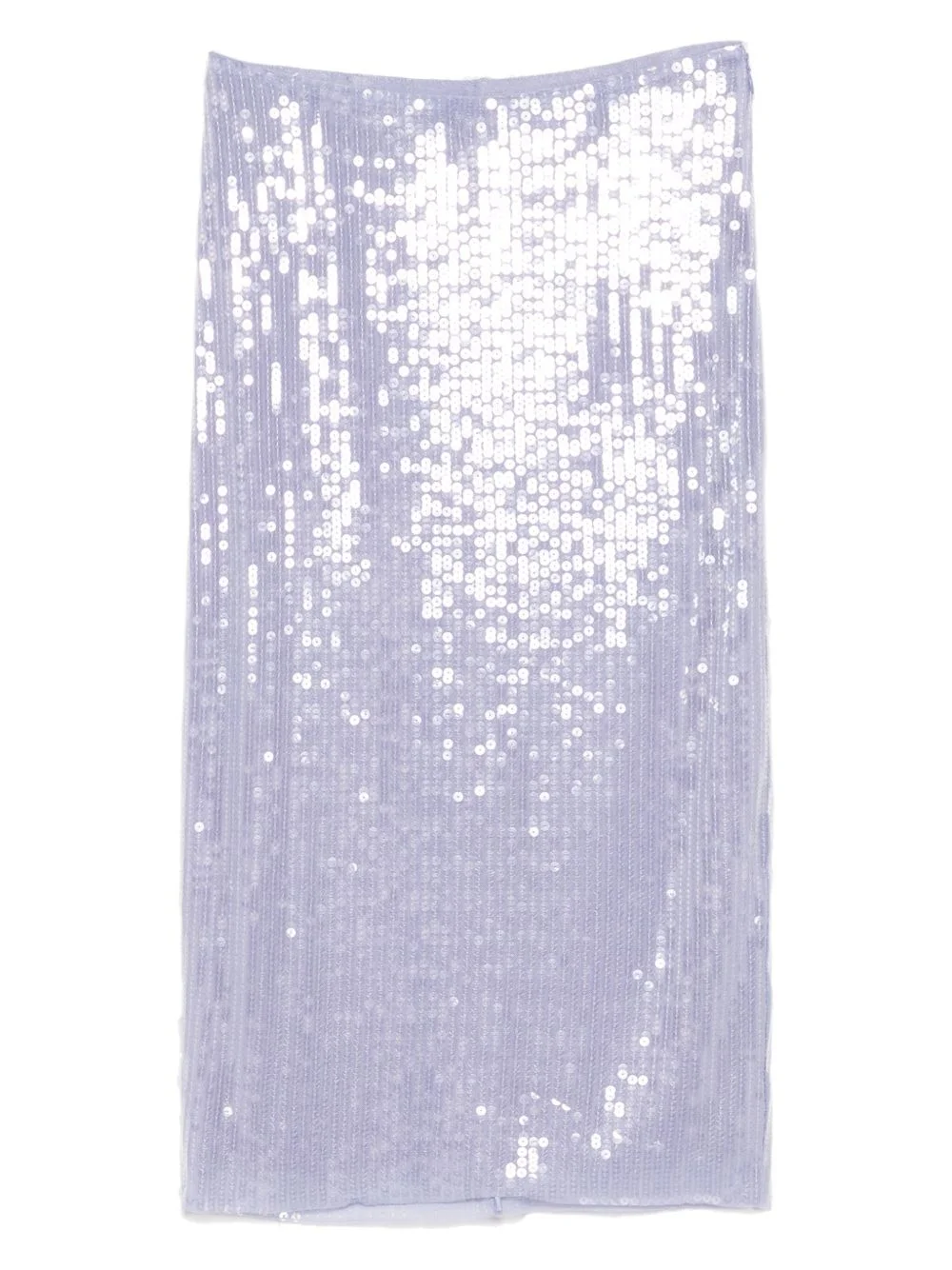 sequinned pencil skirt Highlights - Lilac purple - Elasticated waistband - Sheer overlay Imported Composition Polyester 97%, Spandex/Elastane 3% SIZE & FIT Model measurements Height 5 ft 9 in(1.76 m) Bust/Chest 31.1 in(79 cm) Hips 35.03 in(89 cm) Waist 24.4 in(62 cm) FittingInformation This midi-length skirt is intended to be worn just below the waist The elasticated waist allows for a comfortable fit Made from a midweight stretch fabric, this piece offers elasticity and flexibility when worn