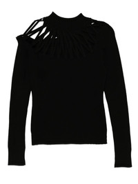 strappy top Highlights - Black - Mock neck - Long sleeves - Ribbed cuffs and hem Imported Composition Merino 88%, Nylon 12% Washing instructions Dry Clean Only