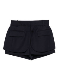 tailored shorts Highlights - Midnight blue - Concealed front fastening - Two side inset pockets - Belt loops - Layered design Made in United States Composition Polyester 55%, Wool 45% SIZE & FIT Model measurements Height 5 ft 9 in(1.76 m) Bust/Chest 31.1 in(79 cm) Hips 35.03 in(89 cm) Waist 24.4 in(62 cm) FittingInformation Designed for a loose fit, offering comfort and movement when worn Made from a midweight non-stretch fabric