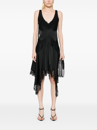triangle laced mini dress Highlights - Black - Concealed side hook and zip fastening - Sleeveless - Lace trim - Asymmetric hem Imported Composition Acetate 73%, Viscose 27% SIZE & FIT Model measurements Height 5 ft 9 in(1.76 m) Bust/Chest 31.1 in(79 cm) Hips 35.03 in(89 cm) Waist 24.4 in(62 cm) FittingInformation Designed for a close fit at the chest and waist with a loose fit at the hip Made from a midweight non-stretch fabric