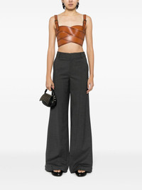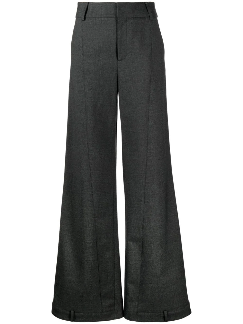 high-waisted cotton wide-leg trousers Highlights - Charcoal grey - Cotton - Melange effect - Vertical seamed - High-waisted - Belt loops - Wide leg - Concealed front fastening - Two side slash pockets Made in United States Composition Wool 95%, Elastane 5% SIZE & FIT Model measurements Height 5 ft 10 in(1.77 m) Bust/Chest 31.49 in(80 cm) Hips 35.43 in(90 cm) Waist 25.19 in(64 cm) FittingInformation Designed with a wide-leg cut, these trousers allow for a close fit at the waist and offer a loose and roomy fit over the leg Made from a midweight fabric This piece fits true to size – take your usual size