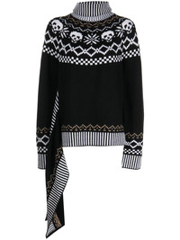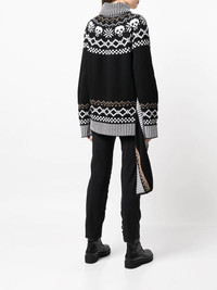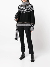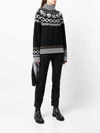 wool intarsia-knit roll-neck jumper black wool intarsia knit roll neck long sleeves ribbed hem ribbed cuffs Made in United States Composition Wool 100% SIZE & FIT Model measurements Height 5 ft 10 in(1.77 m) Bust/Chest 33.85 in(86 cm) Hips 35.03 in(89 cm) Waist 24.01 in(61 cm) FittingInformation This piece fits true to size. We recommend you get your regular size Cut for a loose fit Made with a mid-weight fabric Washing instructions Dry Clean Only