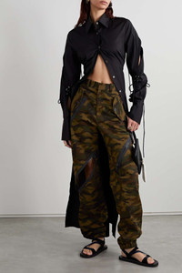 EDITORS'NOTES Monse's pants are spliced with functioning zips that can be undone to reveal a subtle or more generous flash of skin. Part of the label's Spring '23 collection, they're cut from camouflage-print cotton-twill and have a high-rise waist and tapered legs that cinch at the elasticated cuffs. SIZE & FIT - Fits true to size, however those who are between sizes should take the smaller size - High-rise, cut for a loose fit, tapered at the hem - Elasticated at the hem - Mid-weight, non-stretchy fabric - Model is 175cm/ 5'9" and is wearing a US 2 DETAILS & CARE - Camouflage-print cotton-twill - Concealed hook and zip fastening at front - 100% cotton