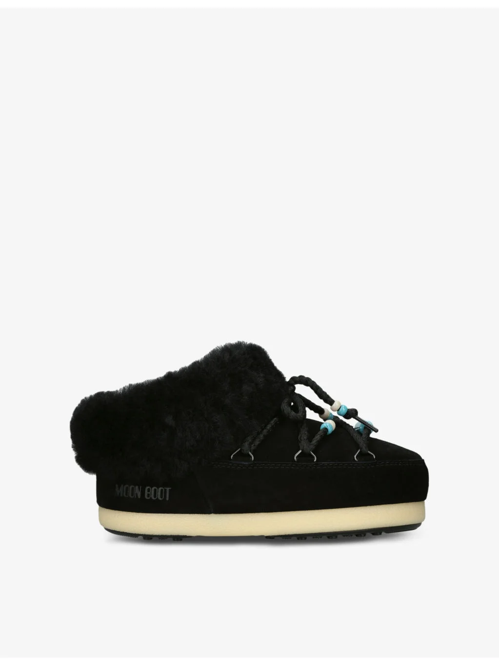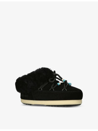 PRODUCT DETAILS - Moon Boot suede mules - 75% calf suede, 25% shearling - Slips on - Chunky design, logo-embossed detail, bead-embellished criss-cross tubular, gender-neutral design - Upper: 75% calf suede, 25% shearling - Lining: 75% polyester, 25% shearling - Sole: 100% thermoplastic rubber - Please refer to the brand's care instructions Ref: R04410908