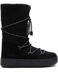 knit-upper lace-up boots Highlights - Black - Knit upper - Lace-up fastening - Suede lower section - Flat sole - Textured knit Imported Composition Outer: Wool 36%, Acrylic 36%, Leather 28% Lining: Polyester 100% Sole: Synthetic Rubber 100%