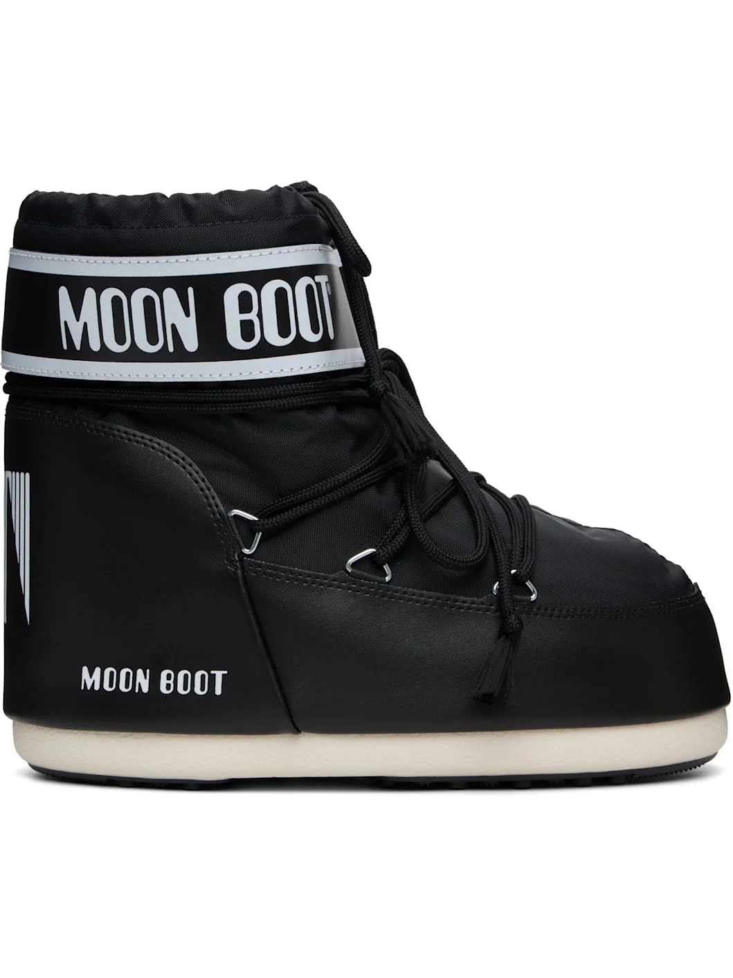 Ankle-high insulated canvas and buffed faux-leather boots. · Ambidextrous construction · Water-repellent · Lace-up closure · Drawstring at padded collar · Logo printed at sides and heel · Fleece lining · Lightweight rubber platform midsole · Treaded rubber sole · Platform: H2" Supplier color: Black Upper: textile, synthetic. Sole: rubber. Made in Hungary 261970F113010