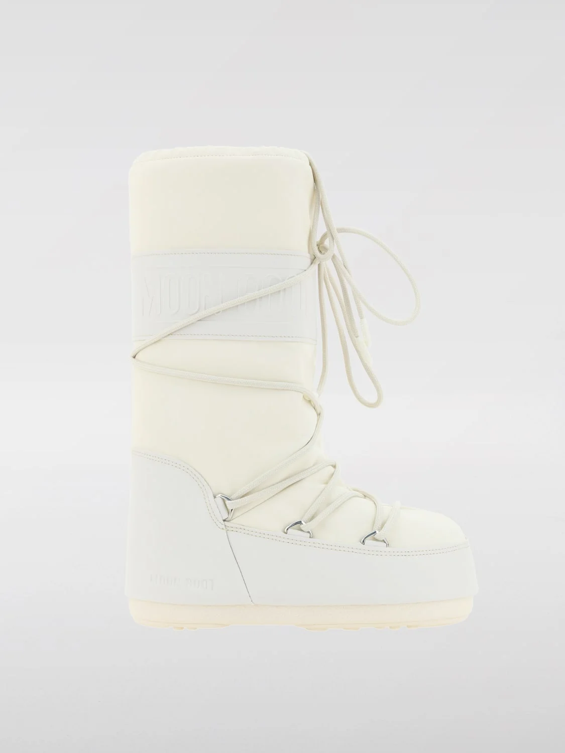 DESCRIPTION - Style: Sporty - Occasion: Gym - Logo: Print - Details: With stretch laces - Model: Slip on - Toe: Round - Shaft: High - Sole: Rubber - Heel: Low heel - Lining: Fabric - Materials: Smooth synthetic leather - Pattern: Plain-colored DETAILS AND CARE Composition TE SIZE AND FIT Sizes not available Designer code: 80D1402760 L002 Giglio Code: G09414 Designer: Moon Boot Collection: Moon Boot Woman Category: Shoes Moon Boot