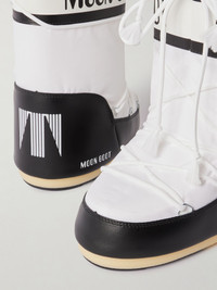 Moon Boot's lightweight, water-resistant snow boots are designed to keep feet toasty in temperatures as low as -31°F. Made from shell and paneled with faux leather, they have gripped soles to help you navigate icy ground, while the drawstring cuffs ensure a snug fit. Size & Fit - Fits true to size, take your normal size - EU sizing = Italian sizing Details & Care - Rubber sole measures approximately 20mm/ 1 inch - White shell, black and white faux leather - Lace-up front - Moon Boot follows its own size guide, therefore the size stated on the box will differ from the one provided in our size chart. To receive your correct fit, please refer to Size & Fit notes