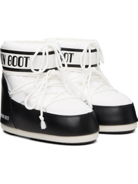 Ankle-high insulated canvas and buffed faux-leather boots. · Ambidextrous construction · Water-repellent · Lace-up closure · Drawstring at padded collar · Logo printed at sides and heel · Fleece lining · Lightweight rubber platform midsole · Treaded rubber sole · Platform: H2" Supplier color: White Upper: textile, synthetic. Sole: rubber. Made in Albania 261970F113016