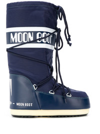 logo drawstring boots Highlights - Blue - Water-repellent - Padded design - Logo print to the side - Round toe - Front lace-up fastening - Calf-length - Flat rubber sole Imported Composition Sole: Rubber 100% Outer: Polyester 100% Lining: Polyester 100% SIZE & FIT FittingInformation This piece is unisex. Please take care when selecting your size This piece fits small - you might like to get one size up This piece has a narrow fit. For those with a wide foot, get the next size up Measurement Sole height 0.98 in(2.5 cm) HEEL 1.37 in(3.5 cm) HEIGHT 13.58 in(34.5 cm) CIRCUMFERENCE 12.59 in(32 cm)