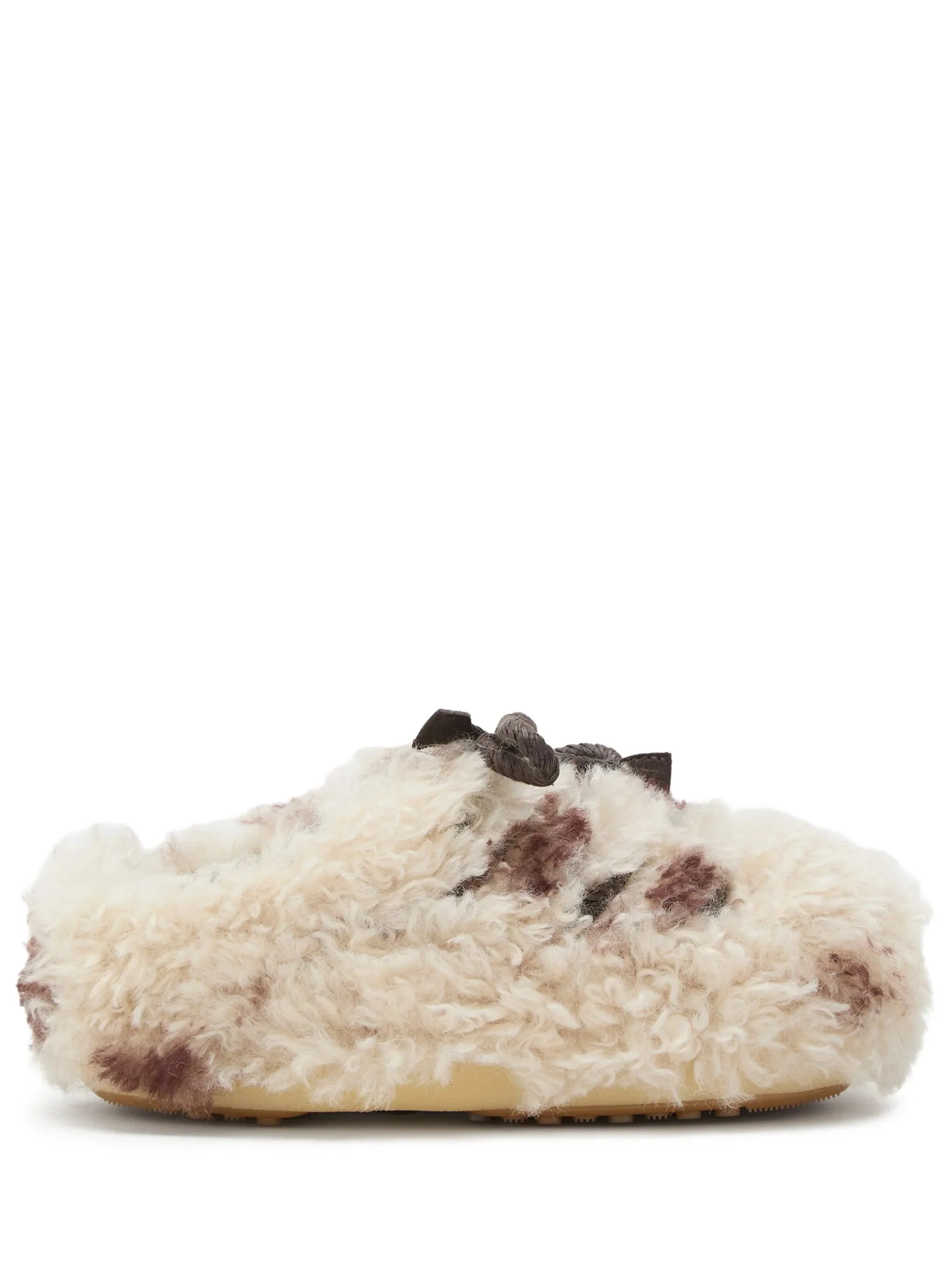 - off-white - curly fur - lace-up detail - flat sole - rounded toe - mottled brown pattern Materials & Product Care Lining: Polyester 70%, Sheepskin 30% Outer: Polyester 100% Sole: Synthetic Rubber 100%