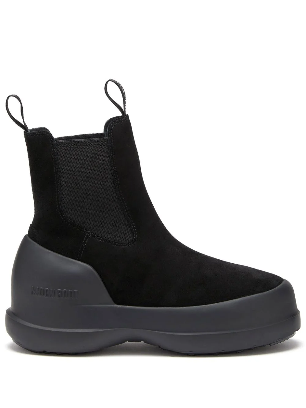 Luna logo-print boots Highlights - Black - Calf suede - Debossed logo to the side - Pull-tab at the heel and tongue - Elasticated side panels - Round toe - Slip-on style - Branded insole - Chunky rubber sole Imported Composition Suede 100%