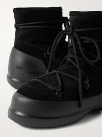 Moon Boot's 'Luna' boots "embody slick city style". Crafted from soft suede, they're set on chunky rubber soles for traction and have a water-repellent coating that makes them perfect for winter adventures. Size & Fit - Fits true to size, take your normal size - Only available in full sizes, go down to the nearest whole size if you take a half size - Cushioned interior for a close fit - Italian sizing Details & Care - Rubber sole measures approximately 20mm/ 1 inch - Black suede - Lace-up front - Moon Boot follows its own size guide, therefore the size stated on the box will differ from the one provided in our size chart. To receive your correct fit, please refer to Size & Fit notes