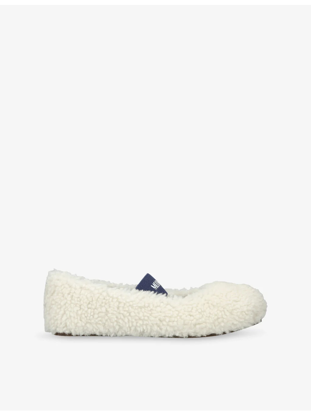 PRODUCT DETAILS - Moon Boot shearling flats - 100% sheep leather - Ballerina style, flat heel, logo elasticated strap, teddy textured upper - Specialist leather clean - Upper: 100% sheep leather - Lining: 70% polyester, 30% sheep leather - Sole: 100% rubber Ref: R04574016