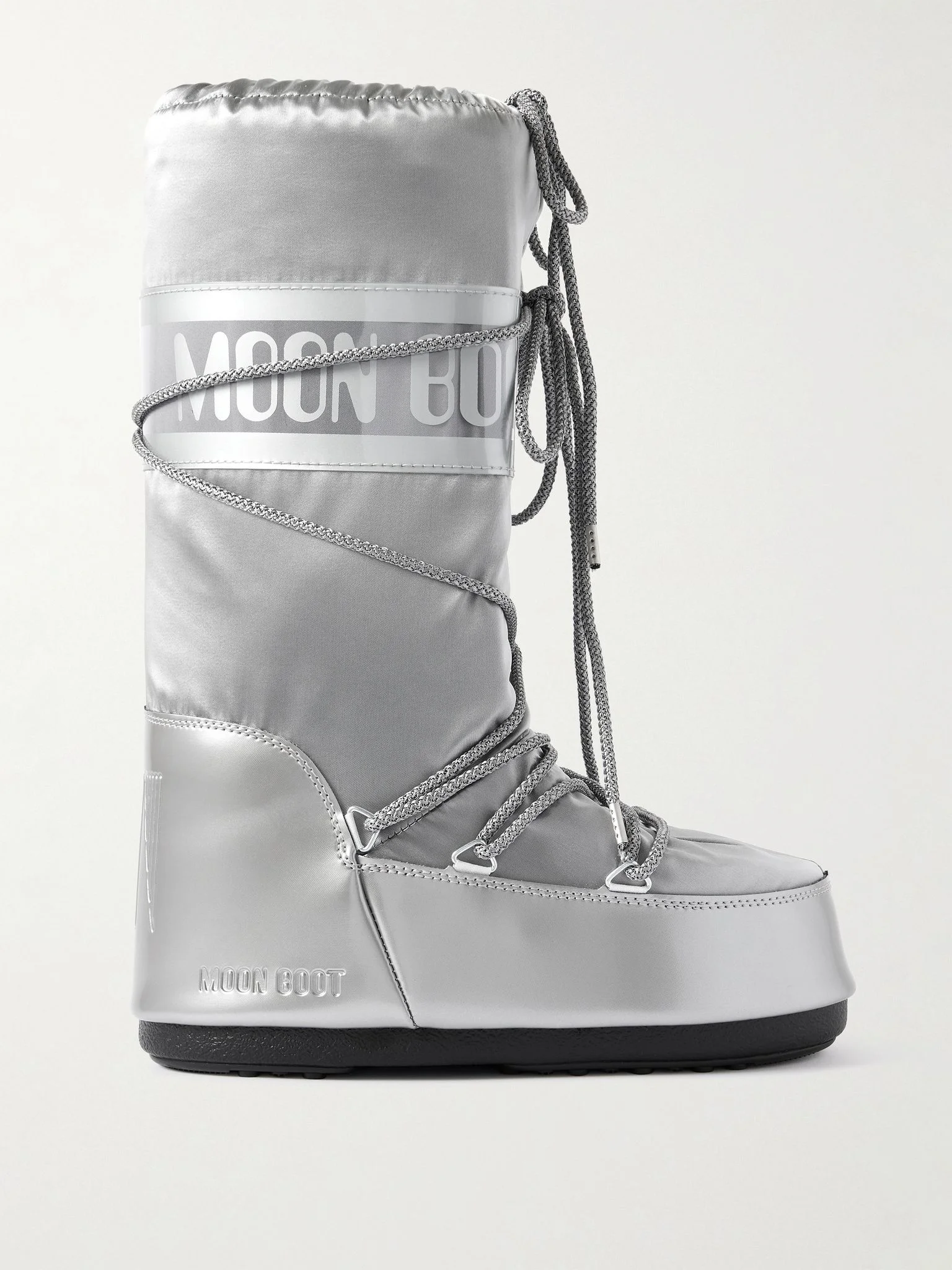 Moon Boot's 'Icon Glance' pair is inspired by the 1969 lunar landing and high-tech astronaut gear. Made from waterproof metallic shell and glossy PVC, they're lined with foam that molds to the shape of your foot and have drawstring cuffs to ensure a snug fit. The gripped soles will prevent you from slipping on icy terrain. Size & Fit - Fits true to size, take your normal size - EU sizing = Italian sizing Details & Care - Rubber sole measures approximately 20mm/ 1 inch - Silver shell and PVC - Lace-up front - Moon Boot follows its own size guide, therefore the size stated on the box will differ from the one provided in our size chart. To receive your correct fit, please refer to Size & Fit notes