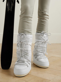 Moon Boot's lightweight, water-resistant snow boots are designed to keep feet toasty in temperatures as low as -31°F. Made from shell and paneled with faux leather, they have gripped soles to help you navigate icy ground, while the drawstring cuffs ensure a snug fit. Size & Fit - Fits true to size, take your normal size - EU sizing = Italian sizing Details & Care - Rubber sole measures approximately 20mm/ 1 inch - Light-gray shell and faux leather - Lace-up front - Moon Boot follows its own size guide, therefore the size stated on the box will differ from the one provided in our size chart. To receive your correct fit, please refer to Size & Fit notes