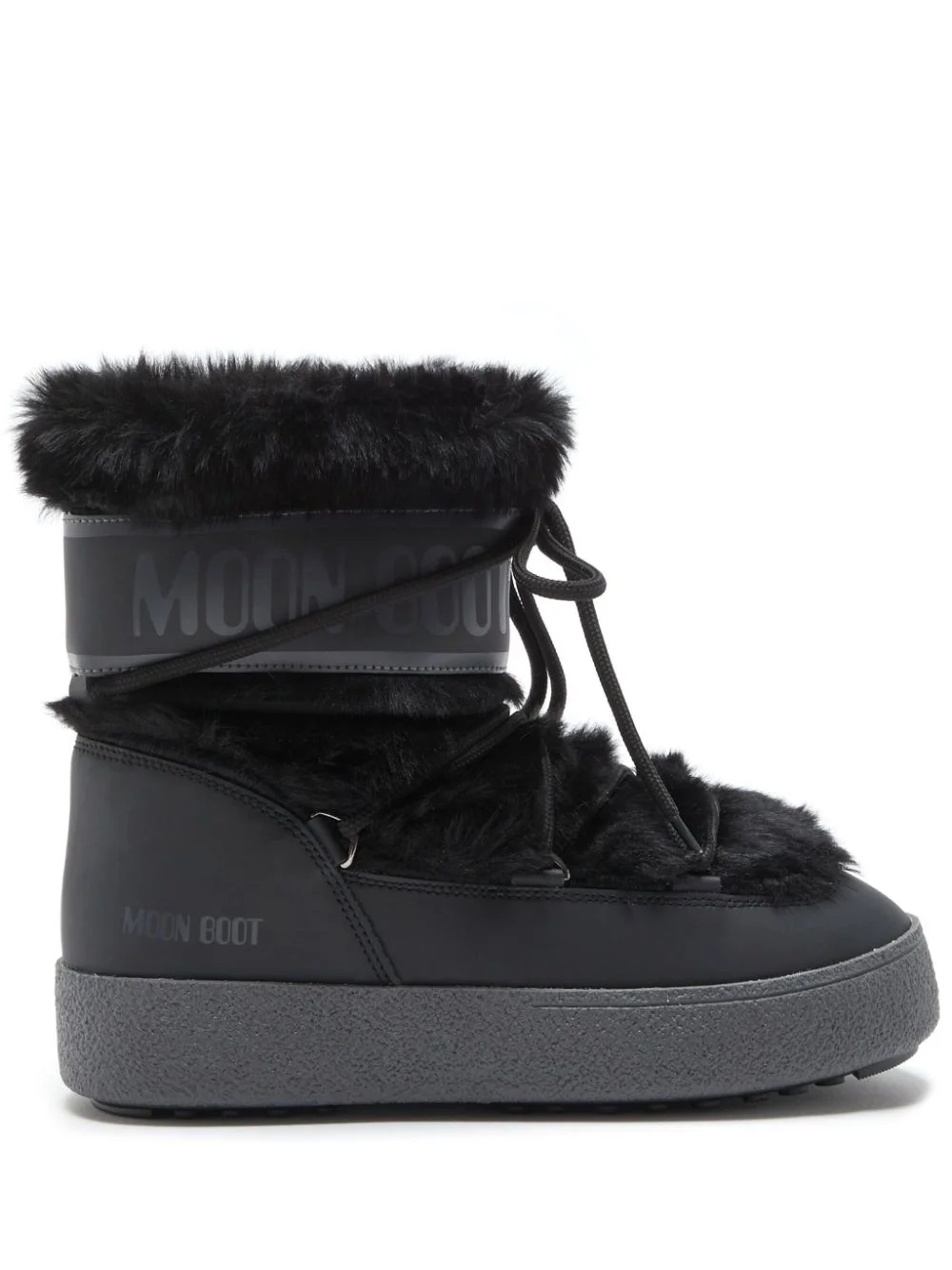 MB Track lace-up boots The LTrack is the sneaker-boot model of Moon Boots that mixes a city style with a trail shoe, keeping the signature astronaut aesthetics - here in the faux-fur version. Water-repellent and equipped with a flexible gripped sole, these shoes will ensure you’re warm on any terrain and protect you against any rocky wet path. Highlights - Black - Faux-fur trim - Logo print to the side - Front lace-up fastening - Round toe - Flat rubber sole Imported Composition Lining: Polyester 92%, Nylon 8% Outer: Polyamide 70%, Polyurethane 30% Sole: Rubber 100%