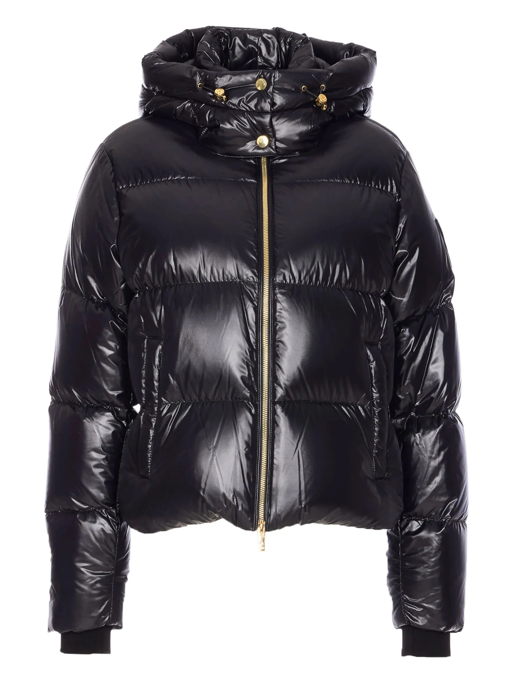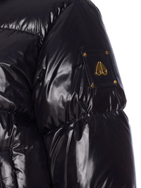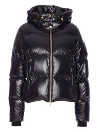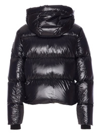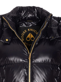 black frontal zip fastening removable hood long sleeves logo patch - Color: BLACK - Made in: Korea, Republic of - Designer Style ID: M35LJ148G 292 Composition and care Outer Composition Nylon: 76.0%, Lining Composition Feather: 10.0%, Outer Composition Recycled Nylon: 100.0%, Outer Composition Elastane: 24.0%, Lining Composition Duck Down: 90.0%