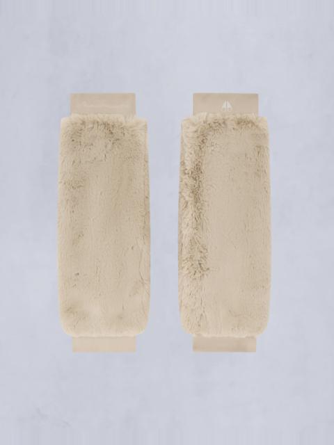 Get cozy and stylish with our Plush Leg Warmers. Perfect for chilly days, they keep you warm in style. Product Features Warmth & Protection - Engineered in Canada, Reversible, Water Resistant Design & Function - Embroidered Logo Moose Knuckles Script Embroidery SKU: 822185905327 Materials & Care Fill 100% Recycled Polyester Fill Composition - Body: 100% Polyester Faux Fur - Lining: 100% Cotton Care Machine wash cold water inside out. Wash dark colors separately. Do not bleach. Line dry. Ironing maximum temperature 110°c. Dry clean inside out - mild process. Country of Origin Made in China